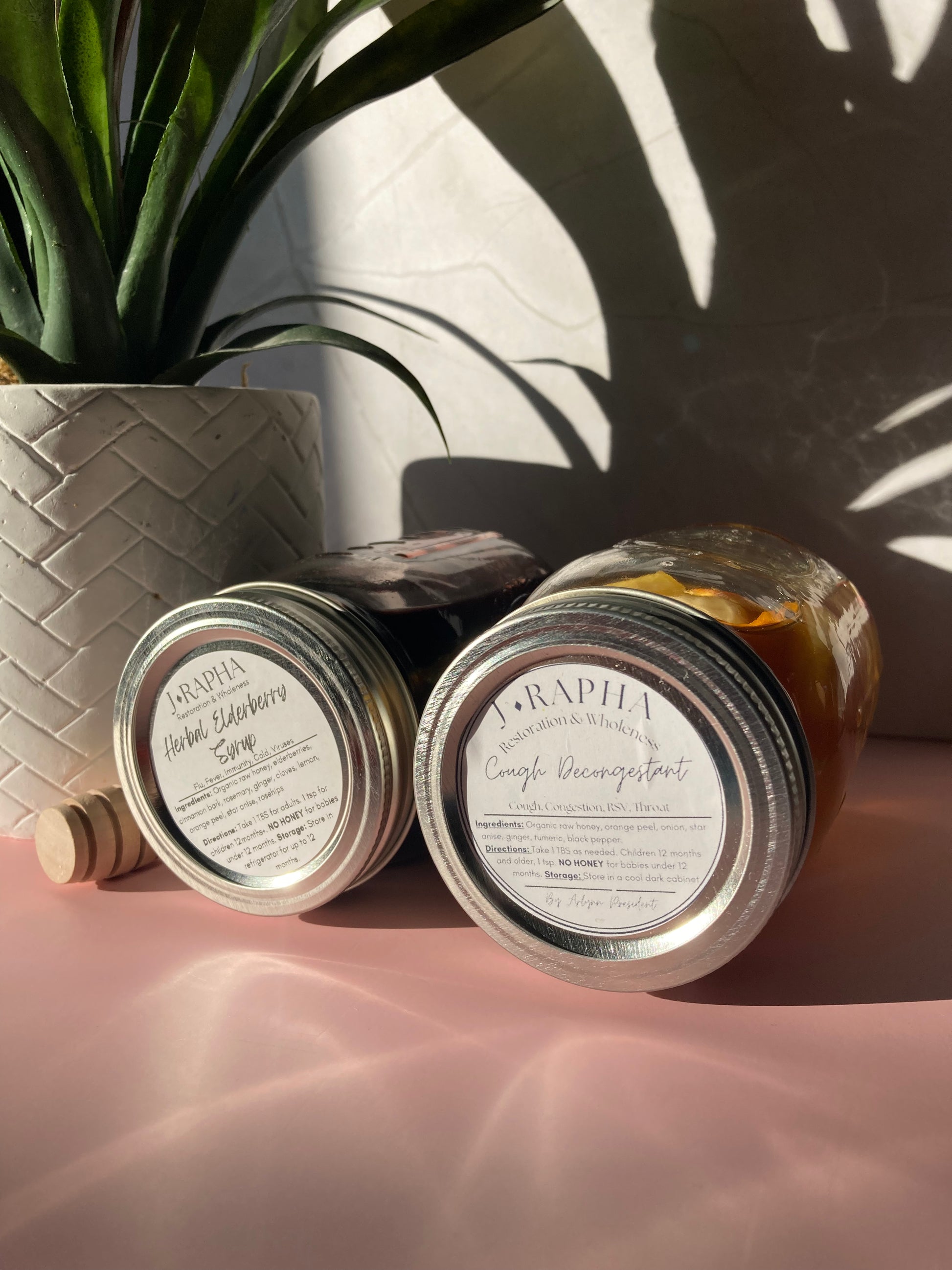 This herbal elderberry syrup helps reduce fever and inflammation, it is rich in alkalinity, and antioxidants. Combined with the cough decongestant syrup, it is a powerful duo!
